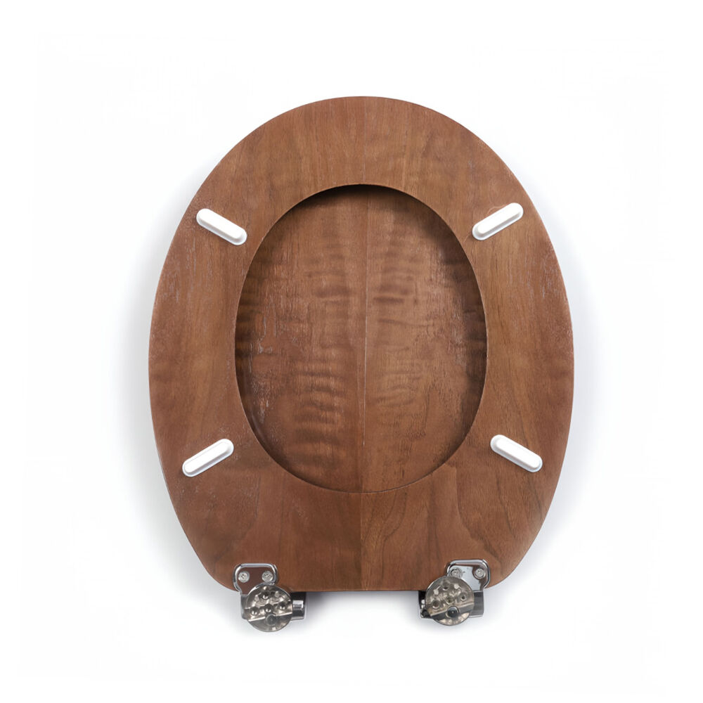 High-quality toilet seat manufactured from engineered MDF, featuring a refined wood-grain finish and an elongated profile designed for comfortable everyday use.