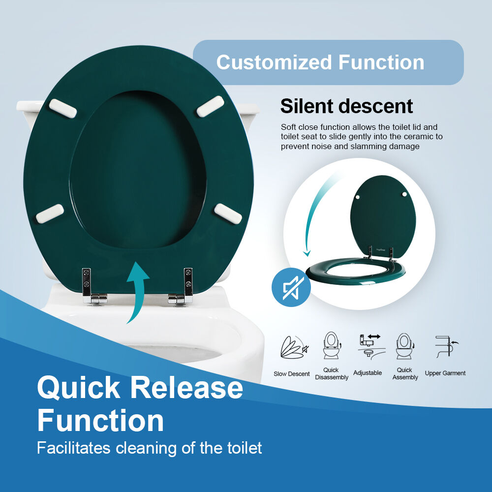 This green, short-style Wood Toilet Lid is designed for users who value an eco-friendly lifestyle and personalized home decor. We use sustainably sourced natural wood fibers, ensuring exceptional structural stability through a high-pressure molding process. The product surface is coated with an environmentally friendly, non-toxic water-based coating, which not only gives it a unique, fresh green color but also provides excellent moisture and scratch resistance. Its short (round) design precisely fits most standard small toilets, making it an ideal choice that combines aesthetics and practicality.